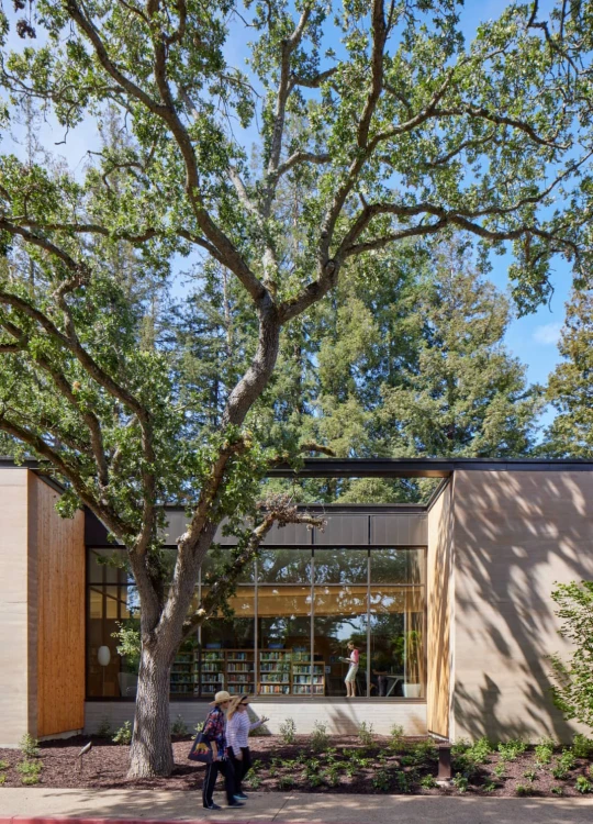 Atherton Library Adaptive reuse incorporating an existing historic town hall, reducing embodied carbon. (All Electric Campus, LEED Gold Library, Targeting LEED Platinum Campus, Net Zero Energy Library)