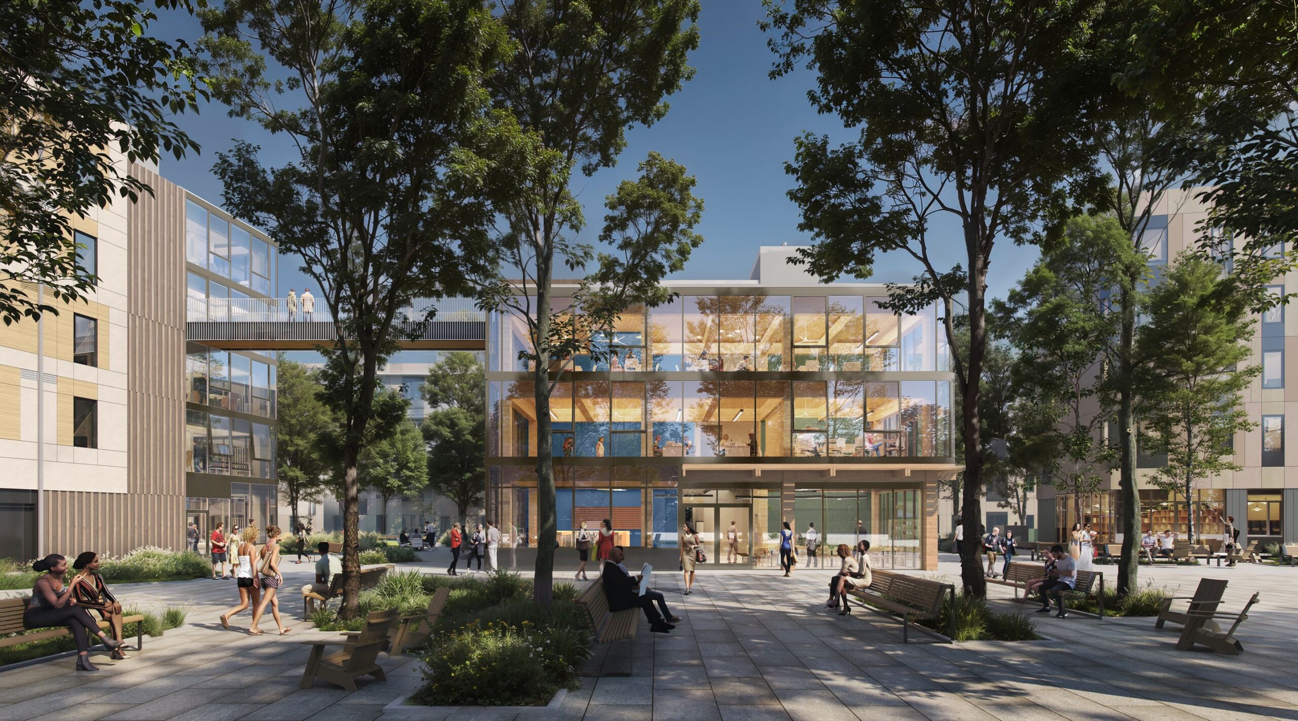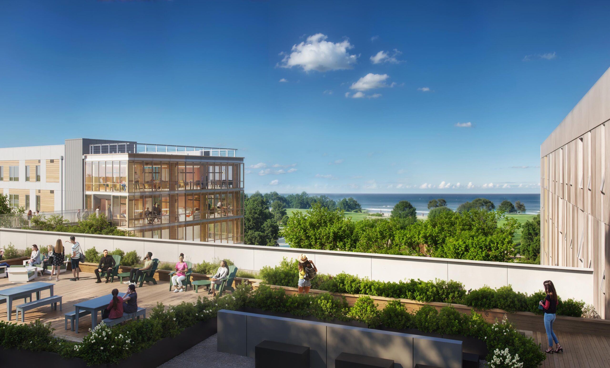 - Program Lobby, mail room, wellness center, fitness center, food commons, study lounge, quiet corners, bike center, laundry, leasing office, childcare, roof garden